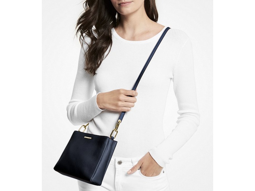 Kožená kabelka Michael Kors Trisha MD Crossbody modrá
