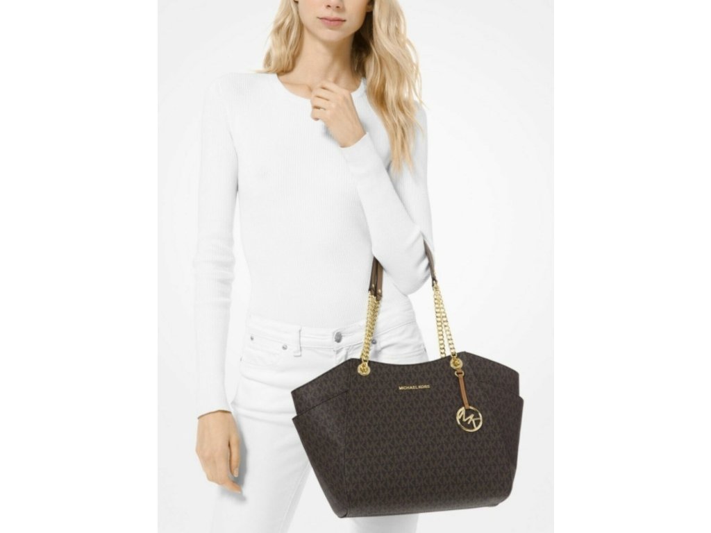 Michael Kors kabelka jet set large logo hnědá