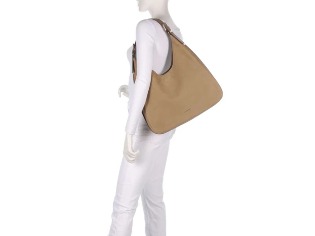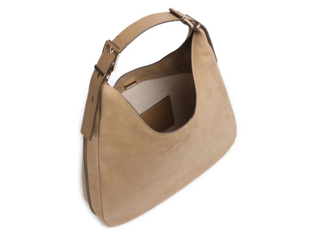 Je vyrobena ze 100% pravé prémiové nubukové kůže a doplněna pozlacenými kovovými detaily. Kabelka je určena k nošení přes rameno s nastavitelnou rukojetí, zapíná se na magnet a uvnitř má zasouvací kapsu.