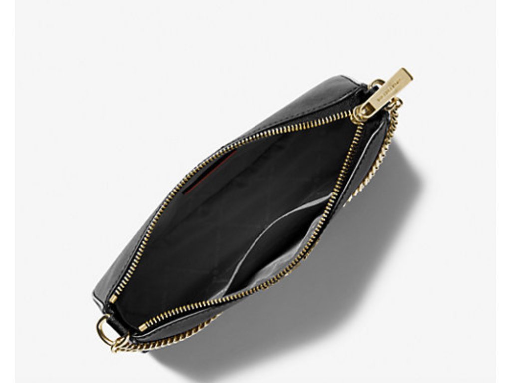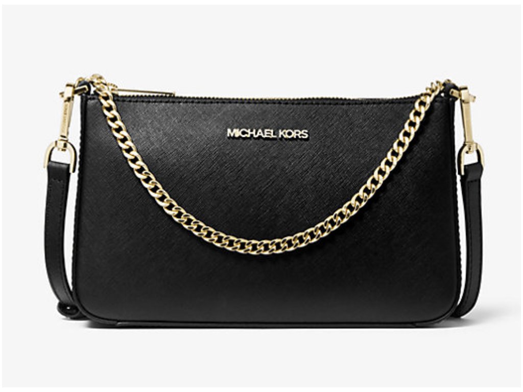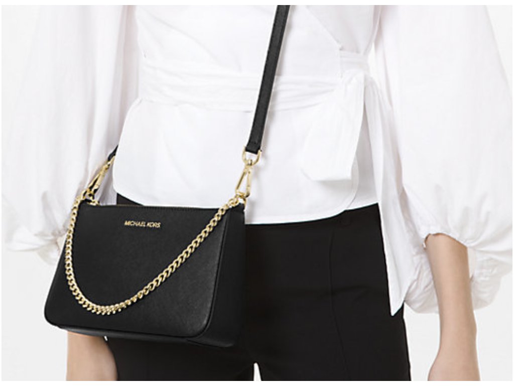 Michael Kors kožená kabelka jet set crossbody black gold černá s řetízkem