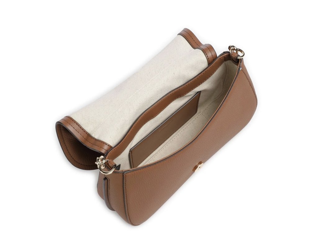 Je vyrobena ze 100% pravé kůže a doplněna zlatými kovovými detaily. Kabelka je určena k nošení přes rameno nebo jako crossbody. Zapíná se na patent a nabízí prakticky řešený vnitřní prostor – jednu kapsu na zip a dvě slotové kapsy. Kabelka má odnímatelné ucho (výška ucha 27 cm). Dlouhý popruh je nastavitelný (délka asi 100-110 cm). Součástí je také ozdobný řetízek.