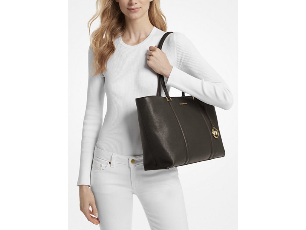 Michael Kors shopper kožená kabelka Temple čokoládová